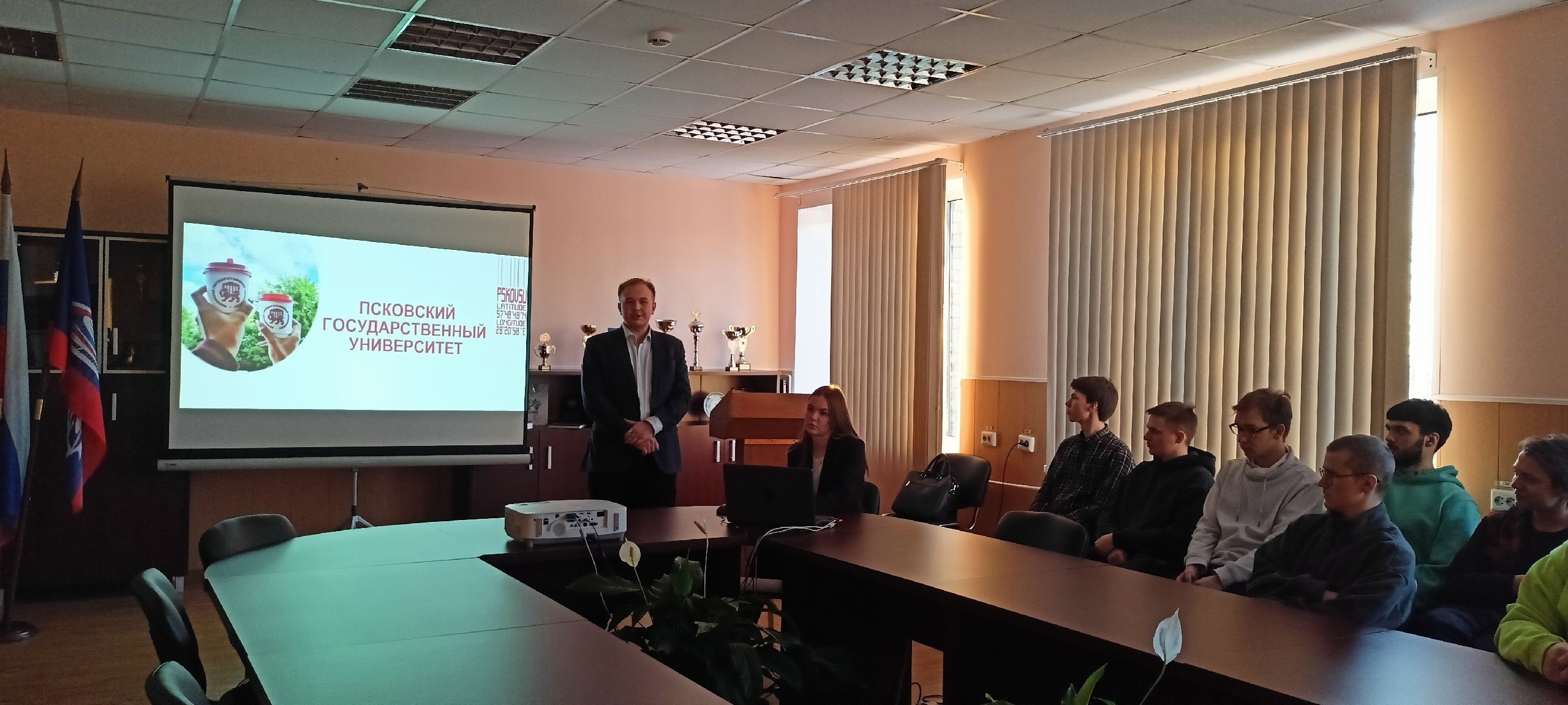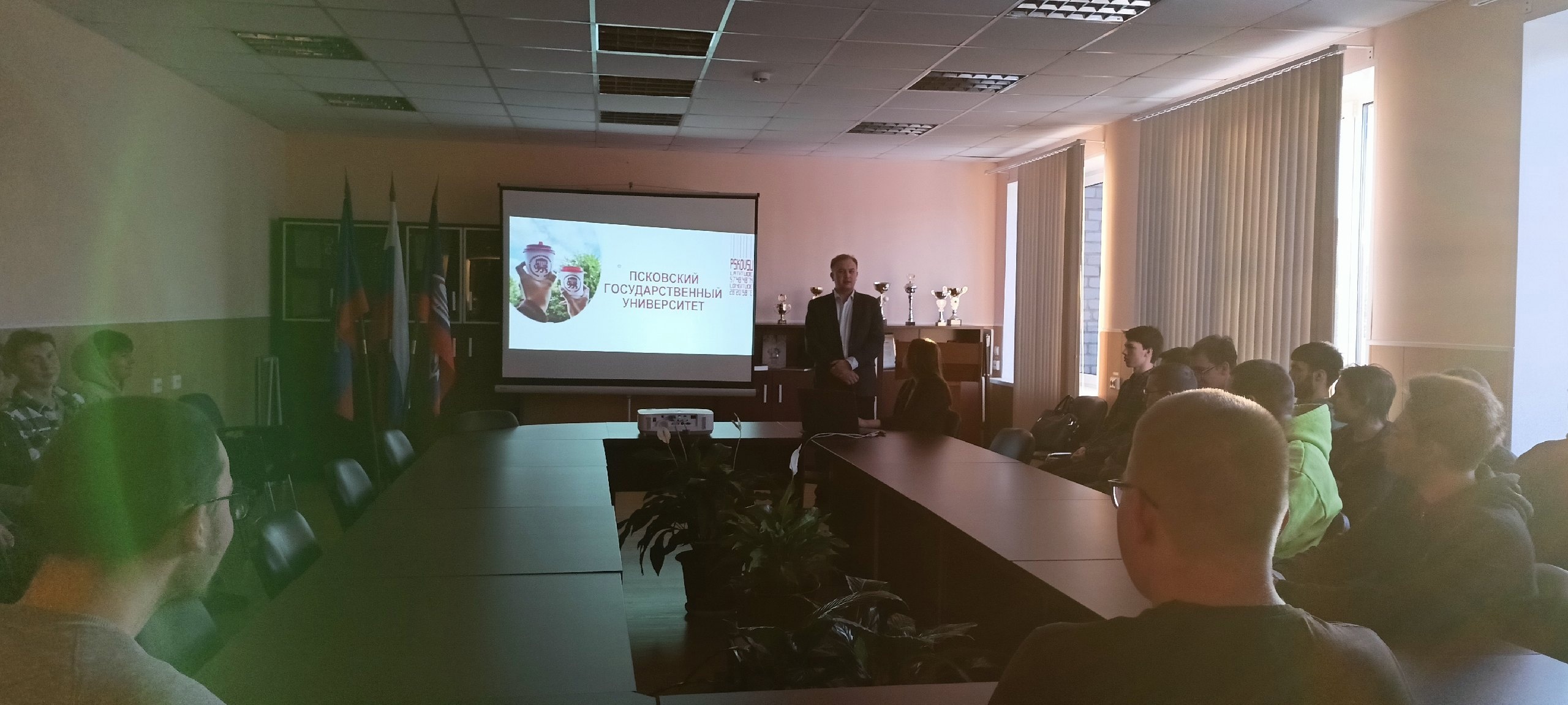 Специалист отдела профориентации и поддержки одарённых детей Цыганкова Светлана Константиновна и специалист отдела по приему в университет, управления коммуникаций в сфере общего образования и организации приема обучающихся Ерпылев Кирилл Евгеньевич рассказали о правилах приема в университет в 2023 году, об направлениях и уровнях обучения, датах приема, представили информацию о внеурочной деятельности студентов ПсковГУ.