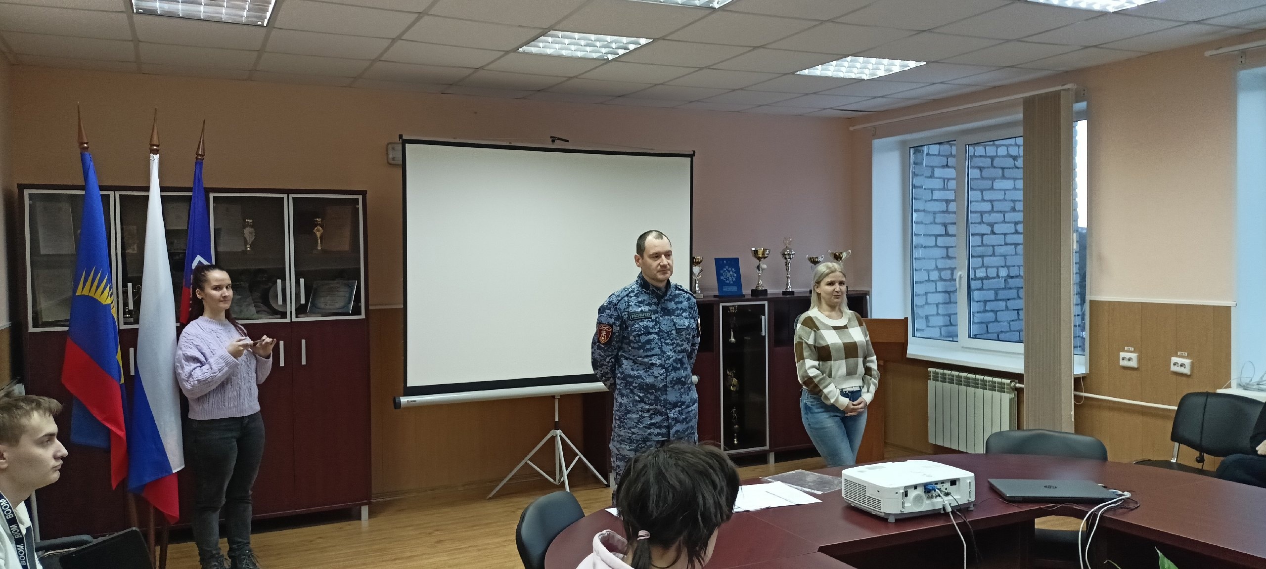 В рамках профориентационной работы, содействию трудовой занятости студентов и выпускников, 30 января 2024 года на базе колледжа прошла встреча с сотрудниками Росгвардии Кандалакшского района, на которой наши выпускники узнали о конкурсном отборе на обучение в военные образовательные организации высшего образования Войск национальной гвардии РФ и о дальнейшем трудоустройстве.