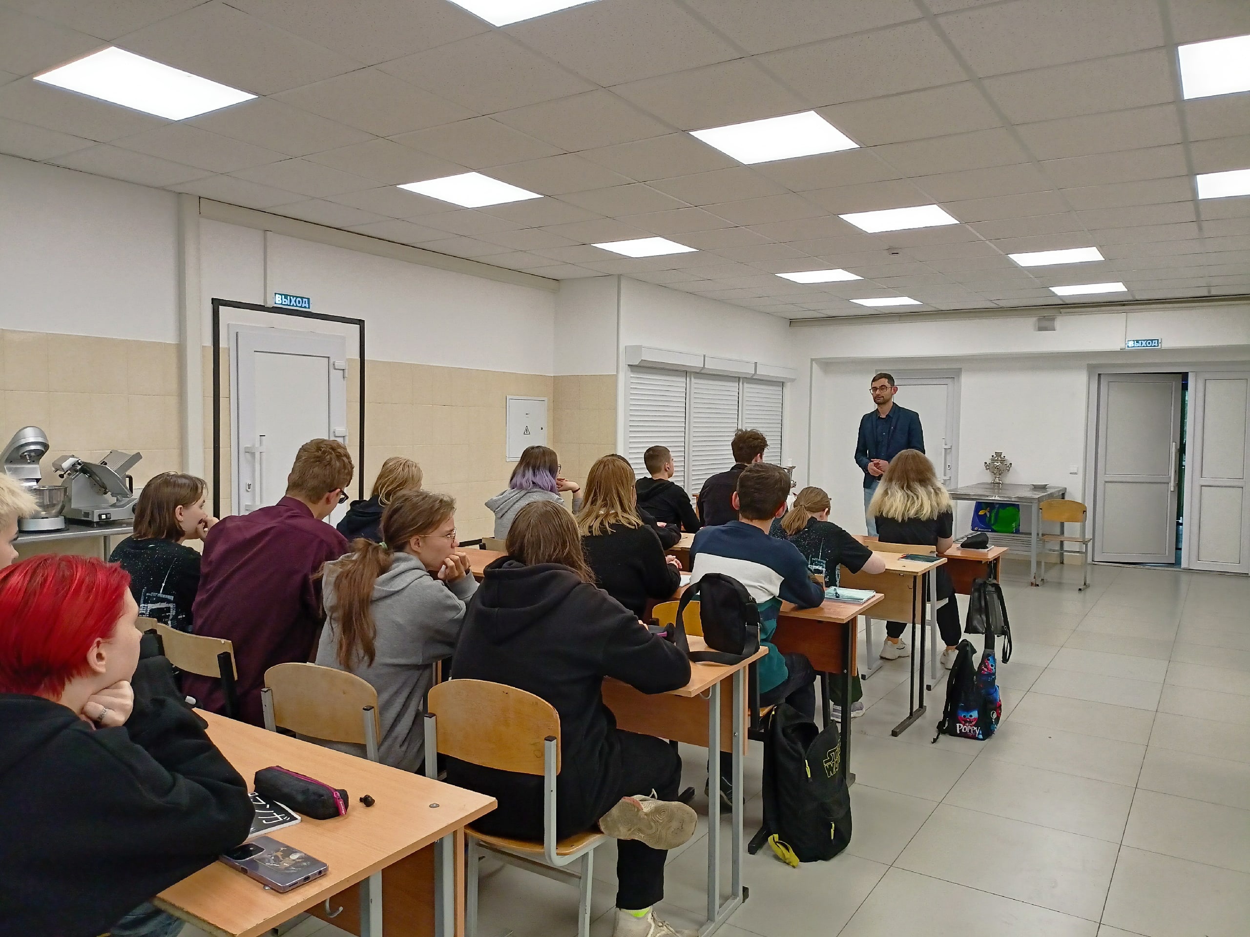 12.09.2023 года Лебедев Игорь Александрович, директор Территории развлечений вкуса "Сполохи", встретился со студентами поварского направления.