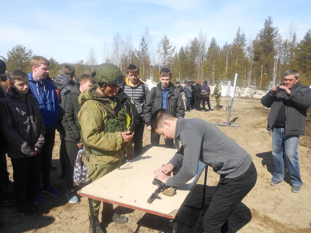 Военнослужащие мотострелковой бригады отрабатывали с юношами практические навыки по обращению с боевым оружием, изготовкой для стрельбы из положения лежа, правильной подгонке и экипировки воинского снаряжения для стрельбы, отрабатывались вопросы по снаряжению магазинов для автомата боеприпасами и разборкой и сборкой автоматов.