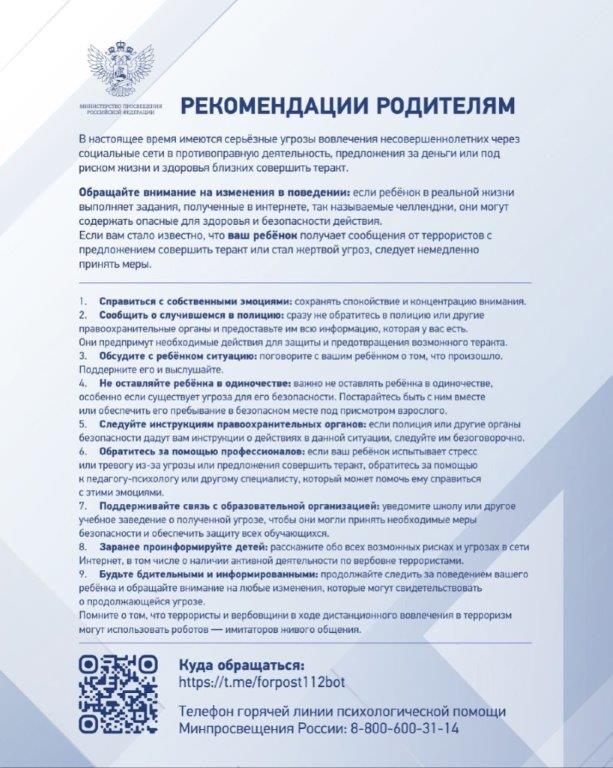 Рекомендации по противодействию несовершеннолетних в террористическую деятельность.