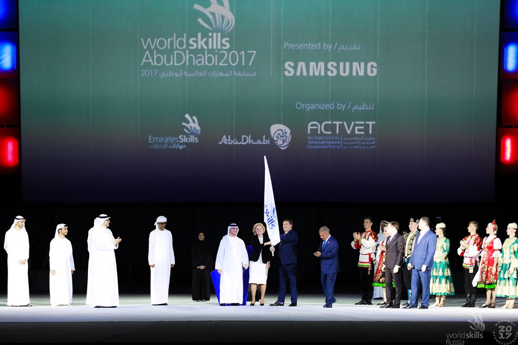 В рамках церемонии закрытия WorldSkills Abu Dhabi 2017 флаг чемпионата мира торжественно был передан России как хозяйке следующего, 45-ого первенства. Организаторы чемпионата в ОАЭ передали эстафету Казани. Флаг приняли вице-премьер РФ Ольга Голодец, генеральный директор ГК «Росатом» Алексей Лихачёв, президент республики Татарстан Рустам Минниханов, генеральный директор Союза «Молодые профессионалы (Ворлдскиллс Россия)» Роберт Уразов и мэр Казани Ильсур Метшин