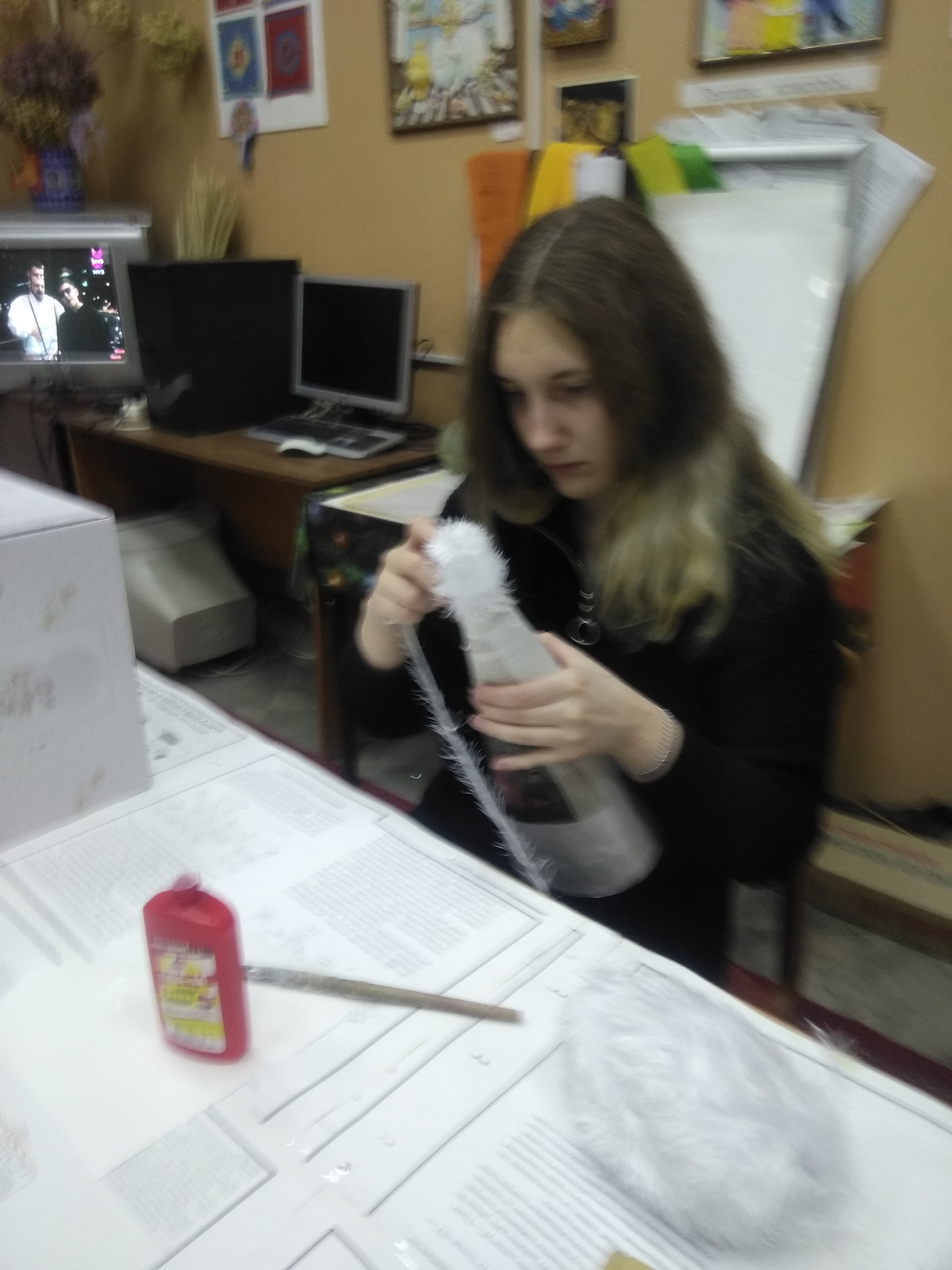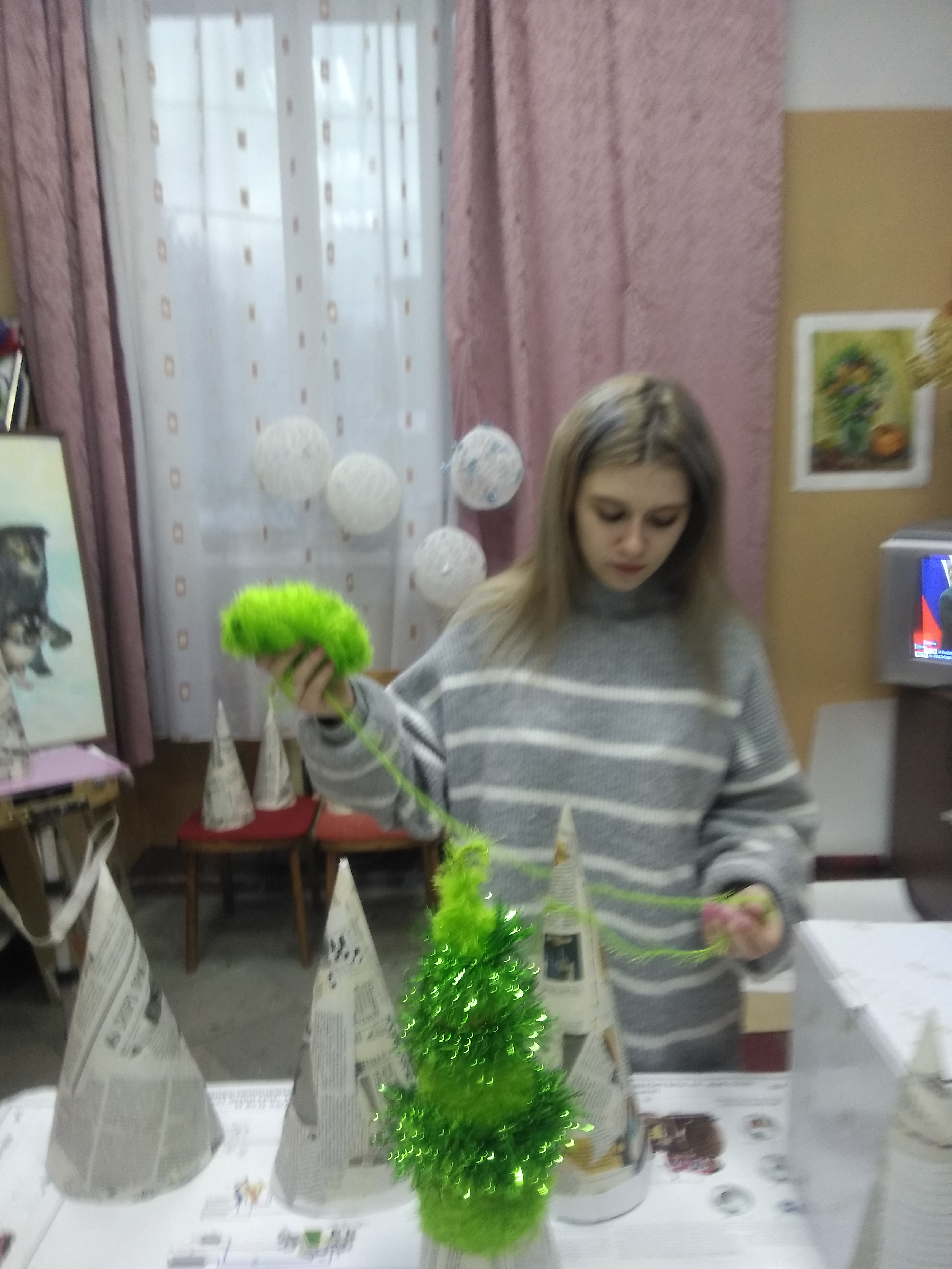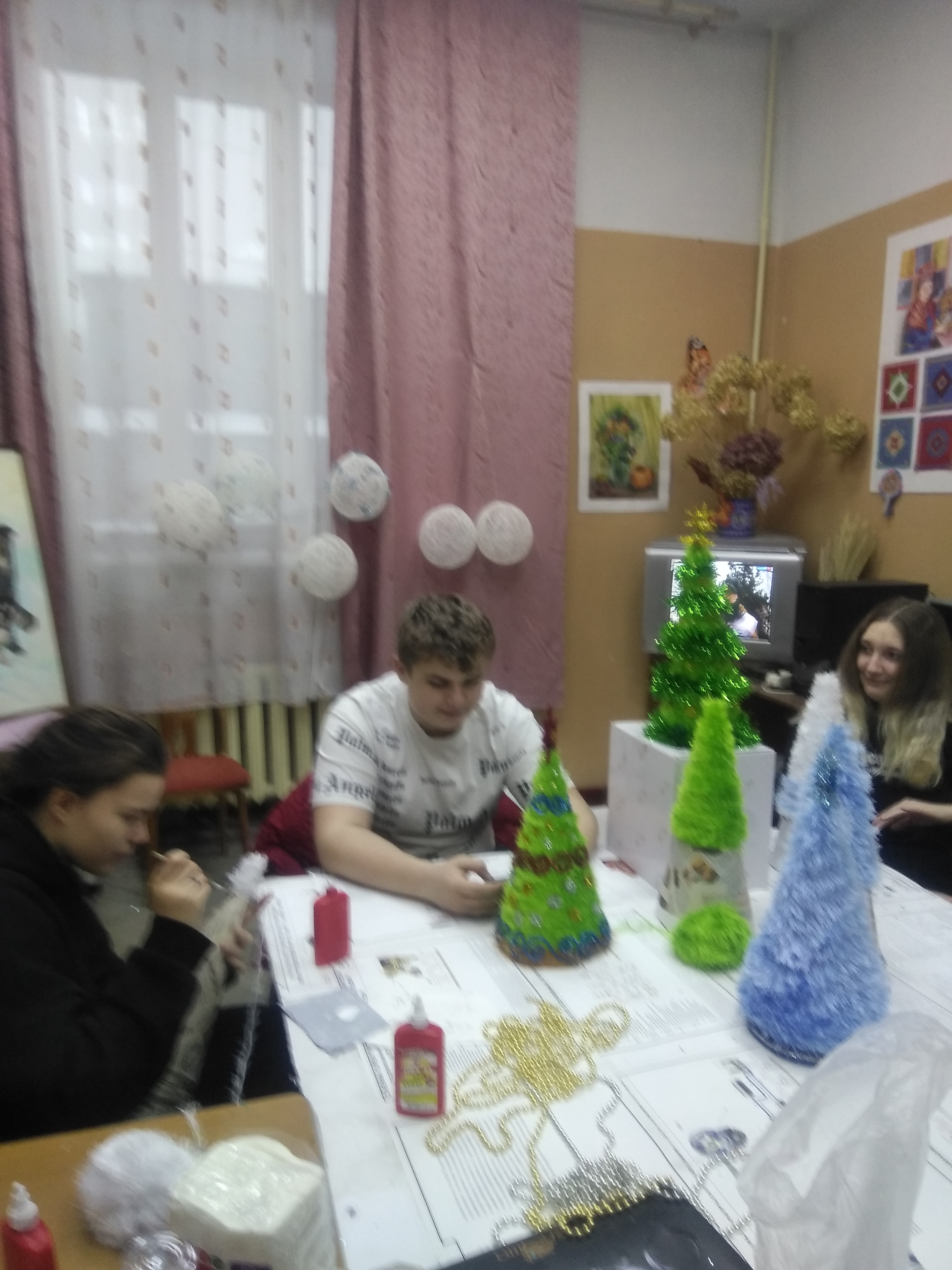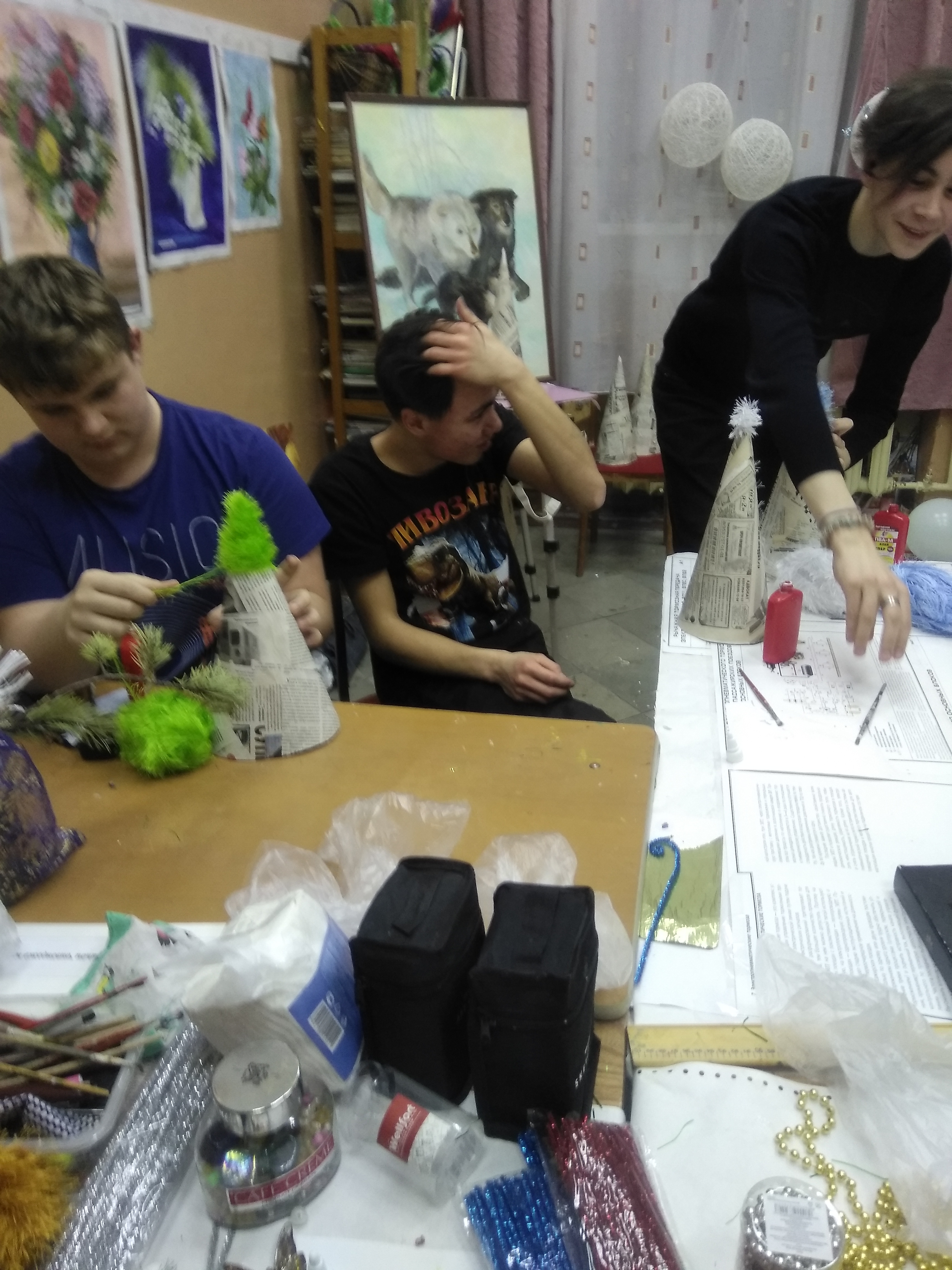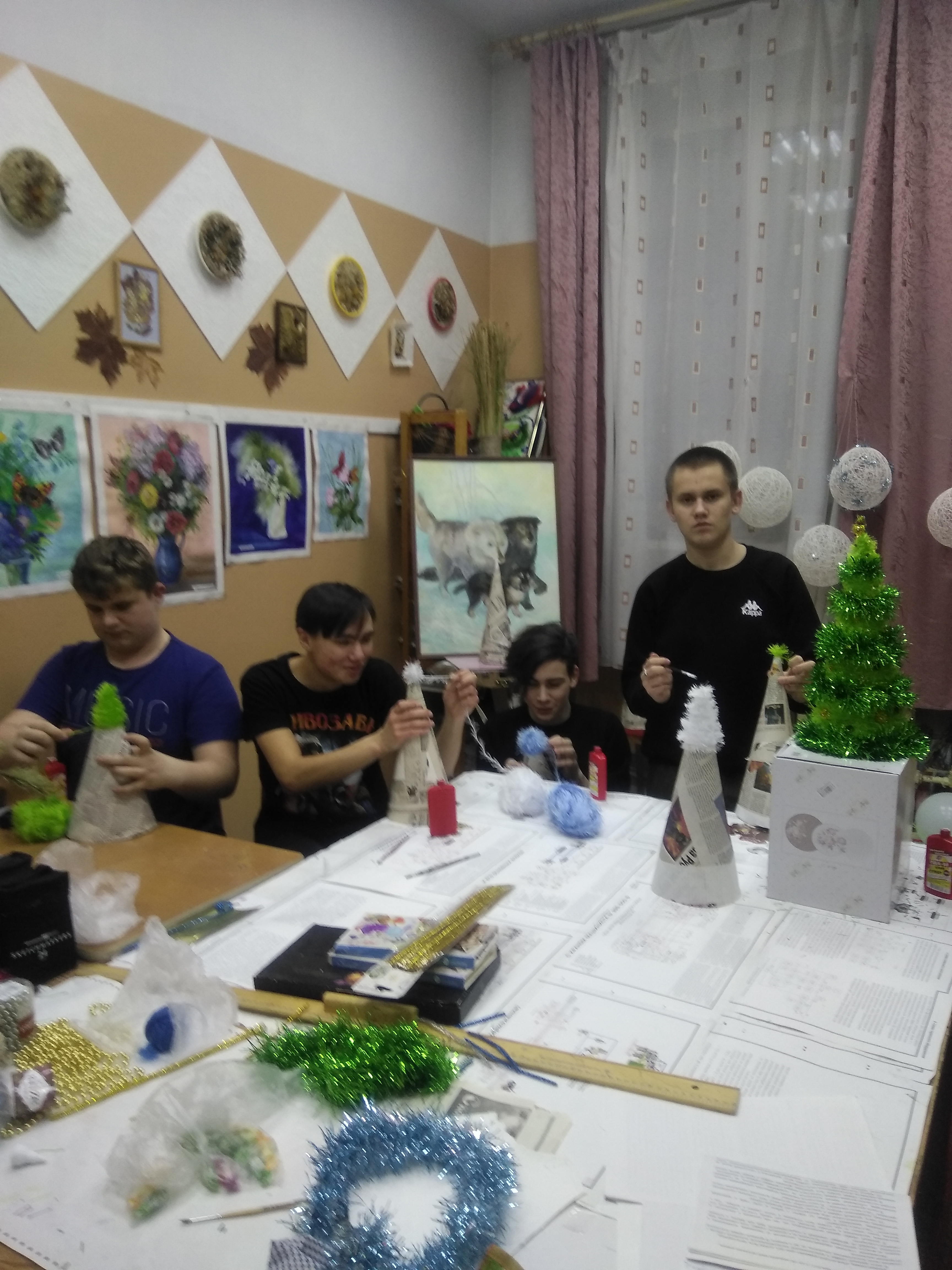 Ребята «Творческой мастерской» изрядно потрудились, украшая помещения колледжа и общежития, создавая атмосферу Новогоднего праздника. Организовали выставку творческих работ «Новогодние фантазии». Выполнили поздравительные плакаты. Целые короба «новогодней радости» ребята увезут домой.