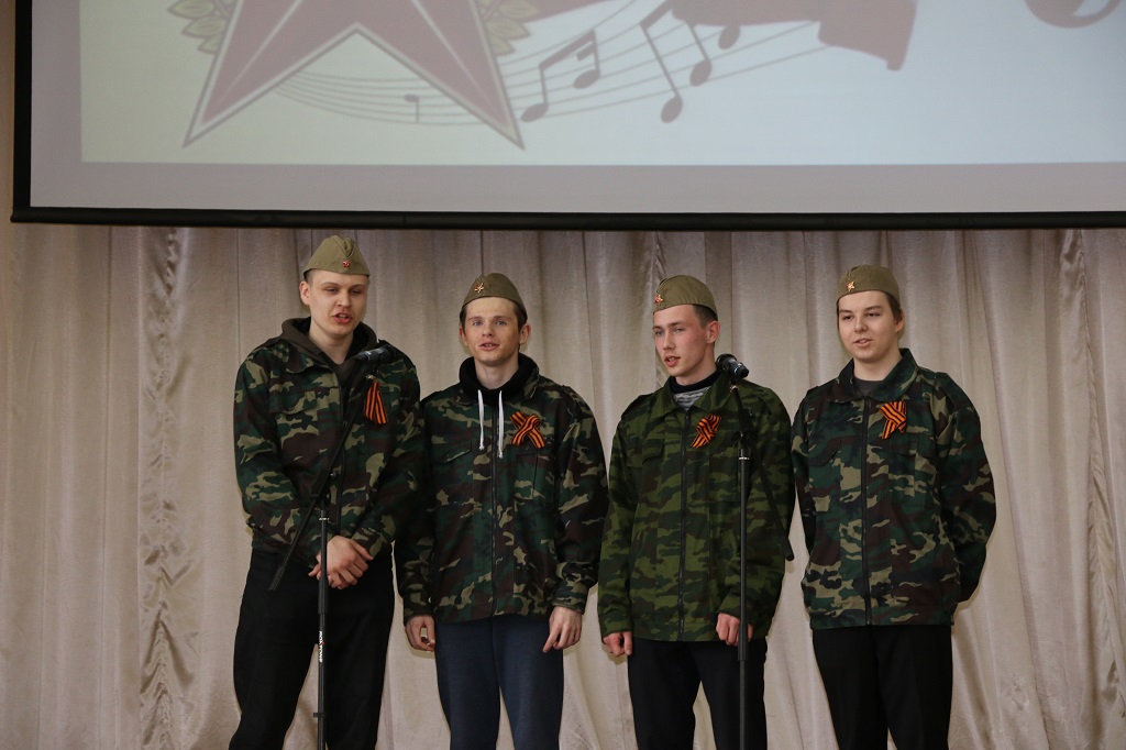 3 мая состоялся традиционный конкурс военно-патриотической песни «К подвигу героев песней прикоснусь». В конкурсе приняли участие студенты 1-3 кусов (всего 13 групп).