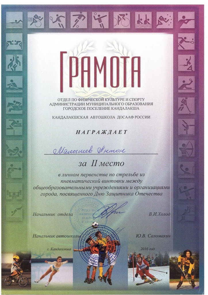 В личном зачёте II место по городу Кандалакша занял обучающийся 1 курса колледжа, группы 161/2 МАЛЫШЕВ АНТОН ЯРОСЛАВОВИЧ
