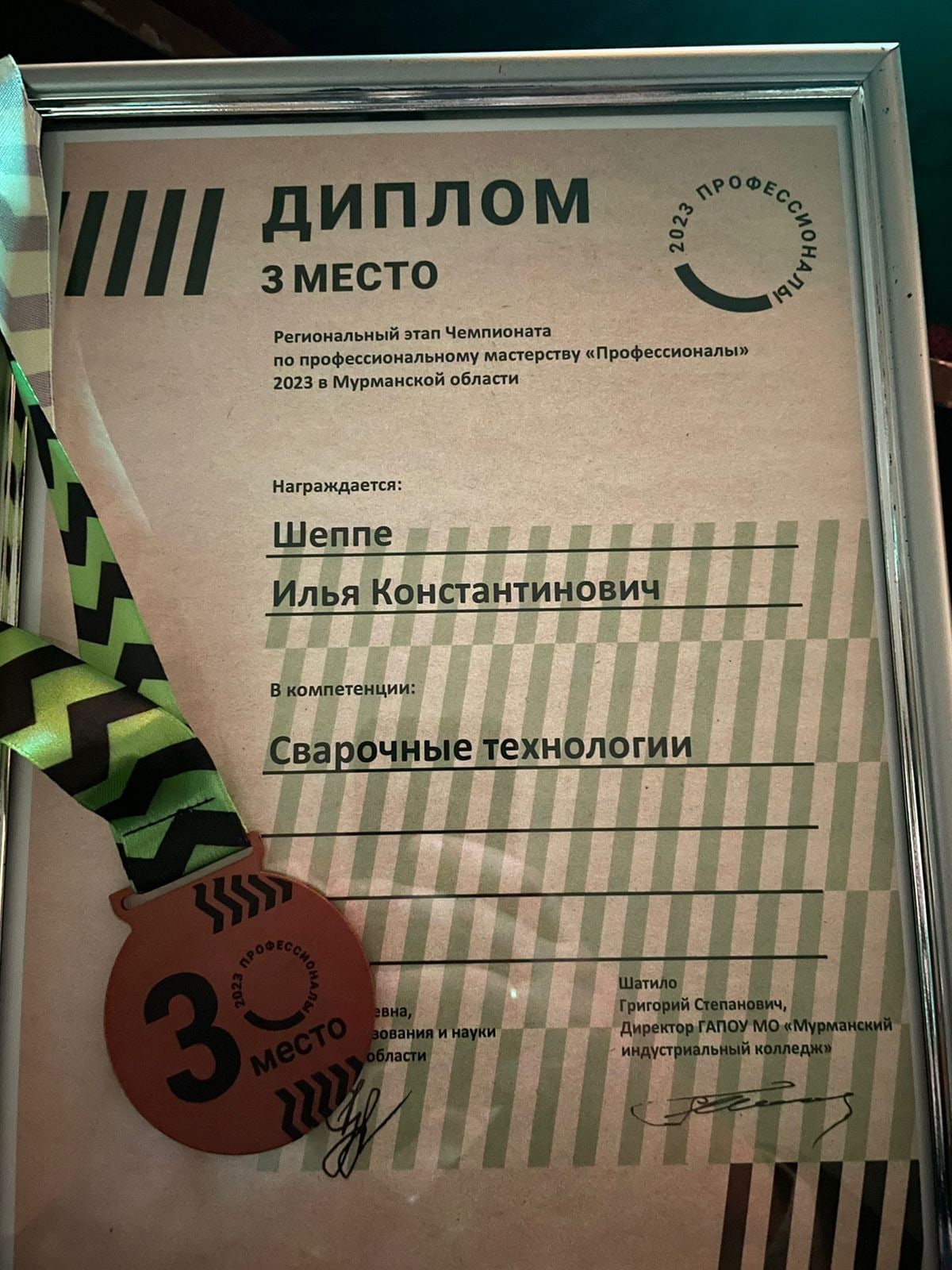"Бронза" - Шеппе Илья, группа 391 «Сварщик (ручной и частично механизированной сварки (наплавки)»;