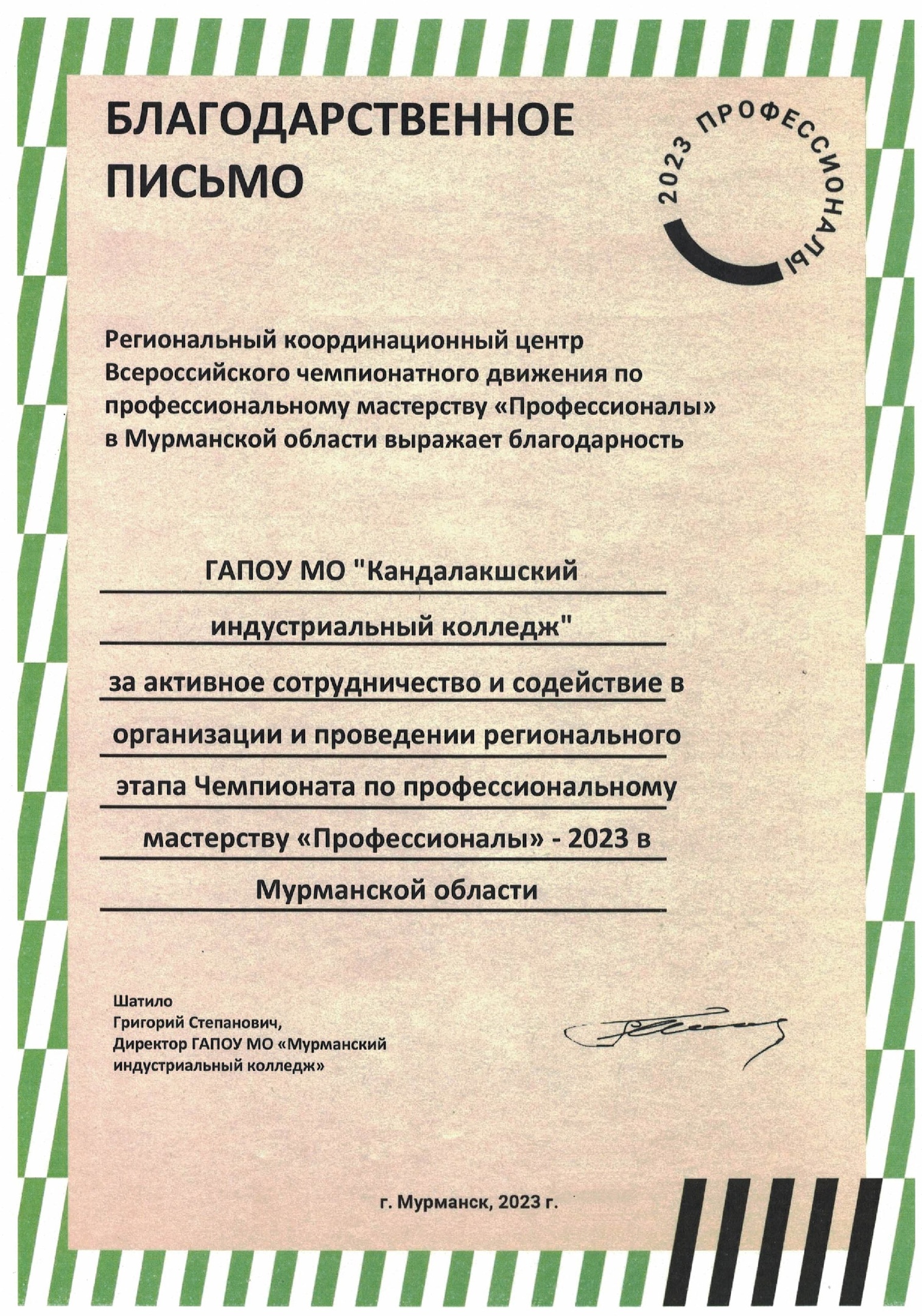 За подготовку и проведение Регионального этапа Чемпионата «Профессионалы»-2023 выражаем благодарность: