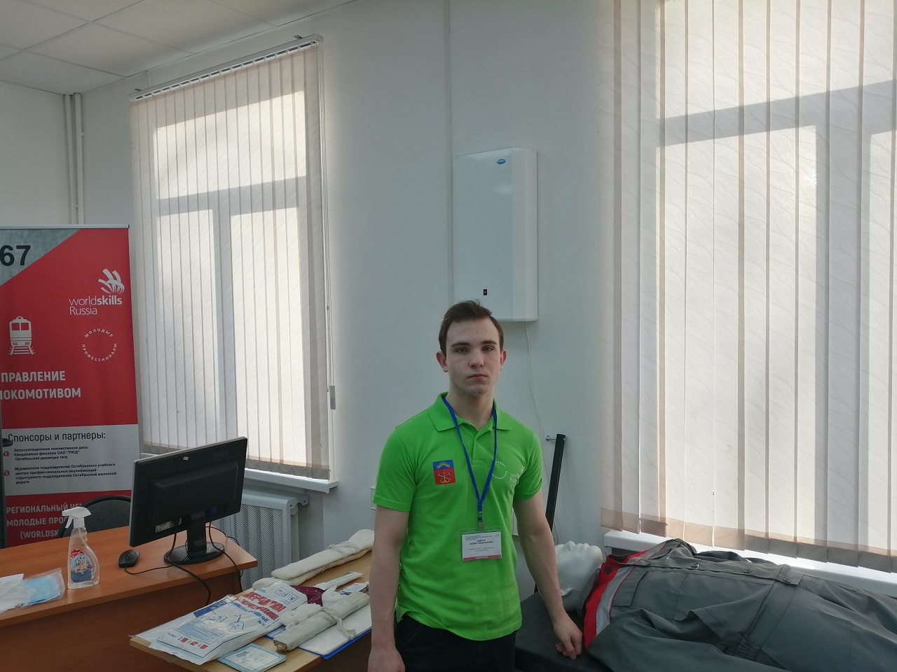 На площадке «Электромонтажные работы» конкурсанты заканчивают выполнять сборку силовой цепи и цепи управления, а на площадке «Управление локомотивом» заканчивается работа над выполнением «кейса» по ПТЭ, практического задания на тренажере 2С5К и по механической части электровоза, а также оказанием ПМП с использованием манекена-тренажера «Гоша».