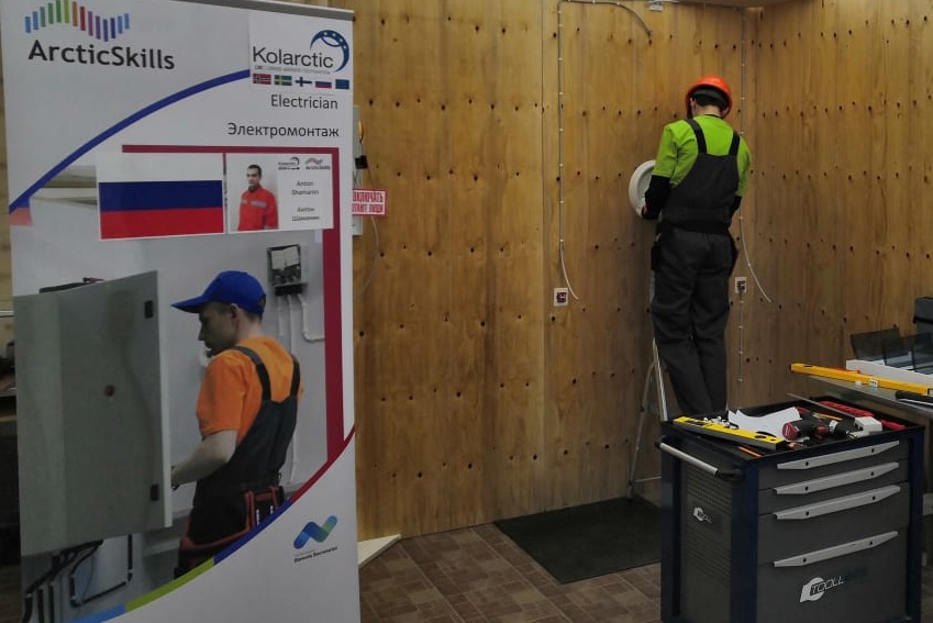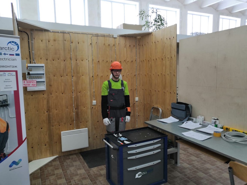В Кандалакшском индустриальном колледже оборудована одна (по компетенции «Электромонтаж») из восьми соревновательных площадок, на которой выполнял конкурсное задание студент Мурманского строительного колледжа - Антон Шаманин.