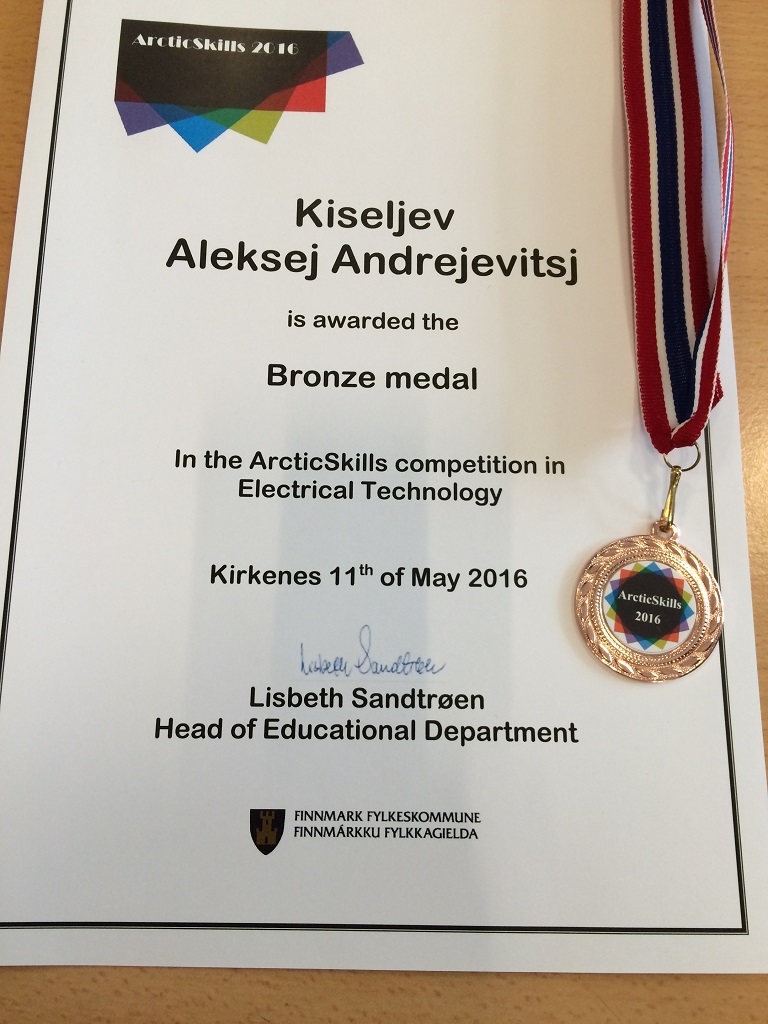 10 - 11 мая студент 2 курса ГАПОУ МО «Кандалакшский индустриальный колледж» Киселев Алексей принял участие в международном конкурсе профессионального мастерства «Arctic Skills 2016» в г. Киркенес королевства Норвегия.