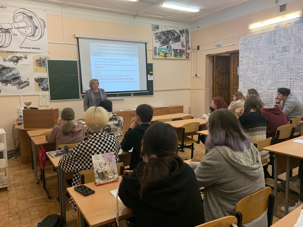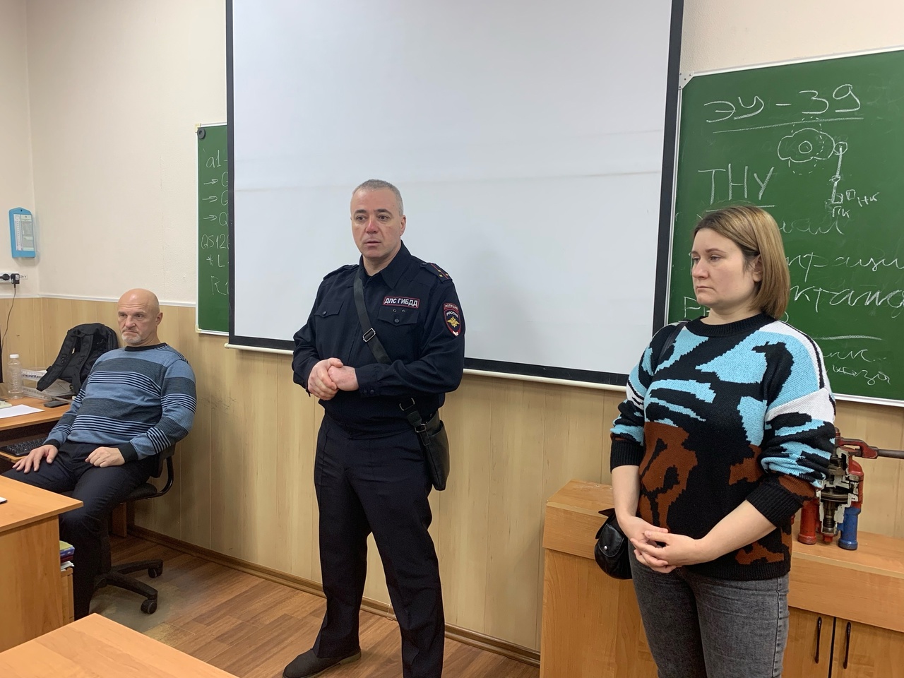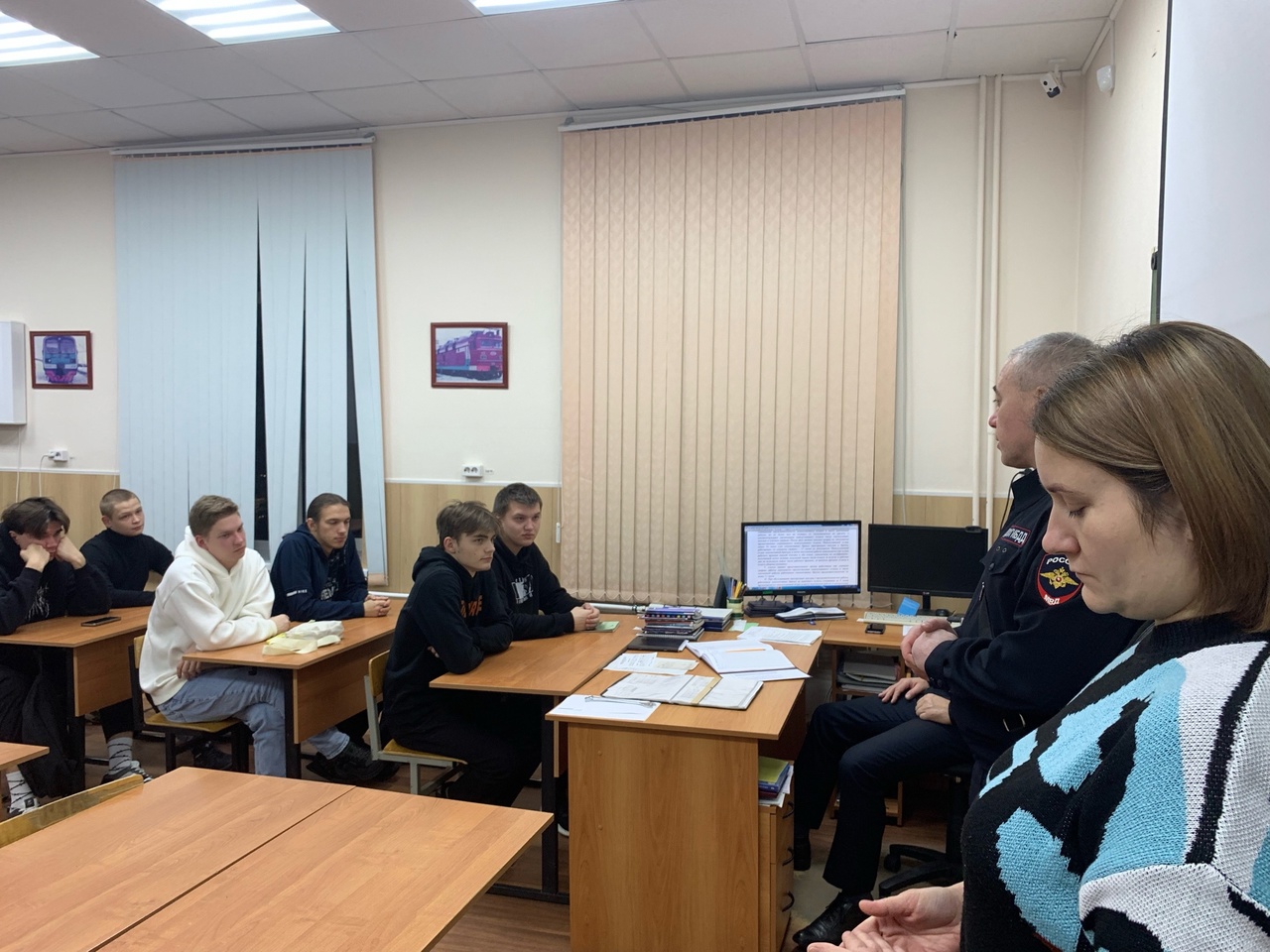 27 ноября 2023 года по адресу: Спекова, д. № 7 (уч. корпус № 2) в рамках Правового Месячника в колледже прошли Дни профилактики с участием специалистов органов, учреждений и организаций муниципальной системы профилактики. Линейный отдел полиции на станции Кандалакша представлял Кузьмин Илья Николаевич, рассказал о правилах поведения на объектах железнодорожного транспорта, о соблюдении мер предосторожности и последствиях их нарушений. Обучающимся напомнили о самых распространенных причинах травмирования: переход путей в неустановленном месте, хождение по путям, использование наушников и мобильных телефонов при переходе через пути. Отдел ГИБДД межмуниципального отдела МВД России "Кандалакшский» представила Константинова Любовь Владимировна и старший инспектор ГИБДД Томаев Сергей Станиславович, сотрудники рассказали ребятам о выявленных правонарушениях в области дорожного движения и ответственности предусмотренной действующим законодательством в области нарушения правил дорожного движения, поведали студентам об уголовной и административной ответственности за их совершения. Сотрудник прокуратуры Зеленова Карина Владимировна,