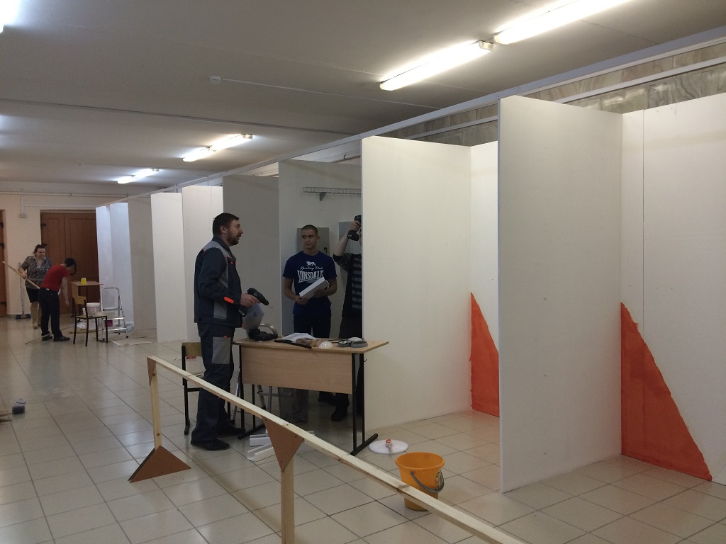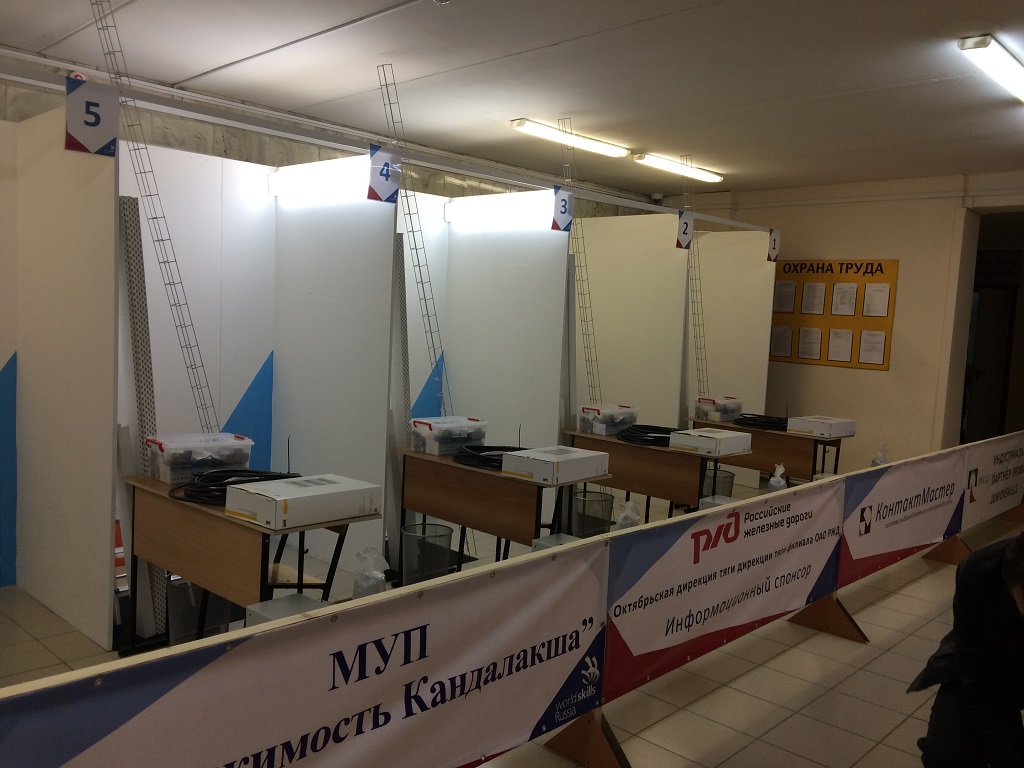 Сегодня в СЦК «Кандалакшского индустриального колледжа» полным ходом продолжается подготовка к Чемпионату. При содействии Социальных партнеров «КАЗ-СУАЛ», ОАО «РЖД», «СК -Универсал», «МУП Недвижимость Кандалакша», «КонтактМастер» уже приобретены и размещены баннеры на площадке проведения и в городе Кандалакша. ОАО «Ростелеком» настроил он-лайн трансляцию Чемпионата с места проведения. Уже собраны кабинки для участников, осталось только их докрасить в цвета «WorldSkills Russia».