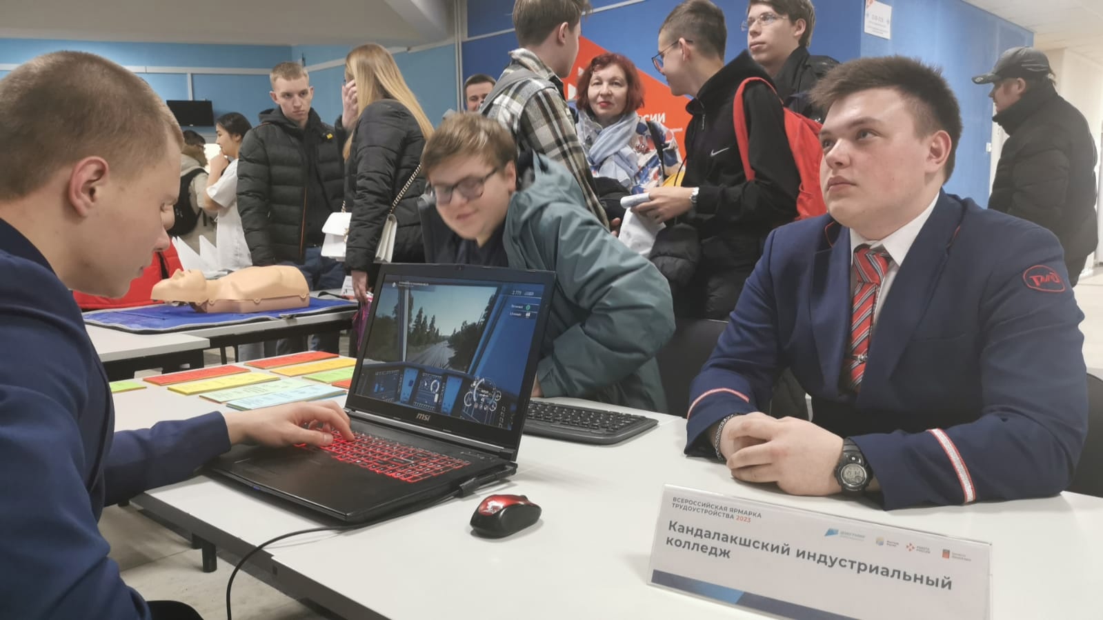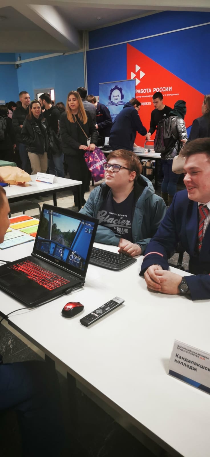 С целью содействия трудоустройству выпускников и студентов профессиональных учреждений и организаций высшего образования Мурманской области 14 апреля 2023 года на базе Мурманского кадрового центра состоялся региональный этап Всероссийской ярмарки трудоустройства "Работа России. Время возможностей", где приняли участие наш преподаватель Пискарев Алексей Владимирович и студенты группы № 261/2 Балакин Даниил и Башкиров Степан