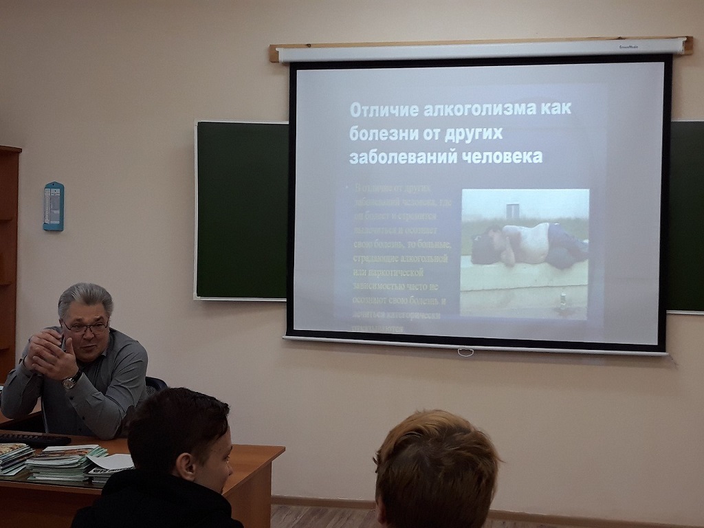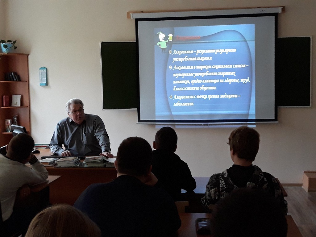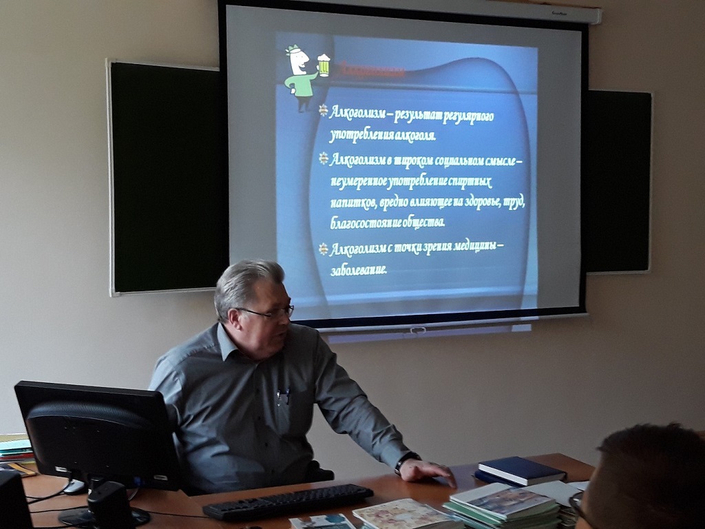 В своей беседе врач нарколог пытался донести до студентов, что злоупотребление алкоголем — это серьёзное заболевание, которое разрушает и человека и общество. Алкоголь приносит необратимые изменения в организм пьющего, он разрушает семьи, вредит успешной и продуктивной жизни самого человека, является причиной значительного количества преступлений, в том числе и тяжких. Студентам был представлен фильм об иллюзиях и слабостях, о вреде алкоголя, его влиянии на будущее и здоровом образе жизни.