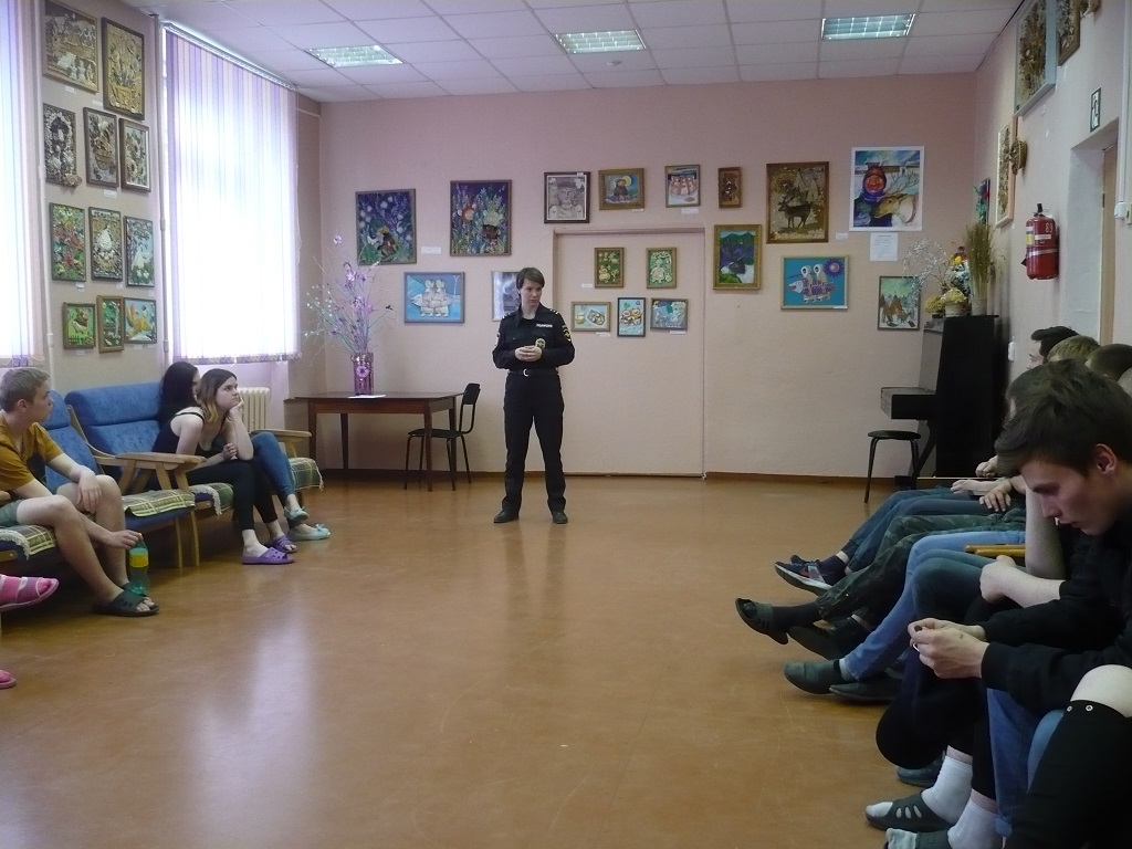 В рамках проведения совместных профилактических мероприятий антинаркотической направленности, пресечения фактов вовлечения несовершеннолетних обучающихся в незаконный оборот наркотических средств и психотропных веществ 23 мая 2018 года в досуговом центре общежития колледжа состоялась встреча студентов с инспектором ОУУП и ПДН МО МВД России «Кандалакшский» Соболевой А.В.