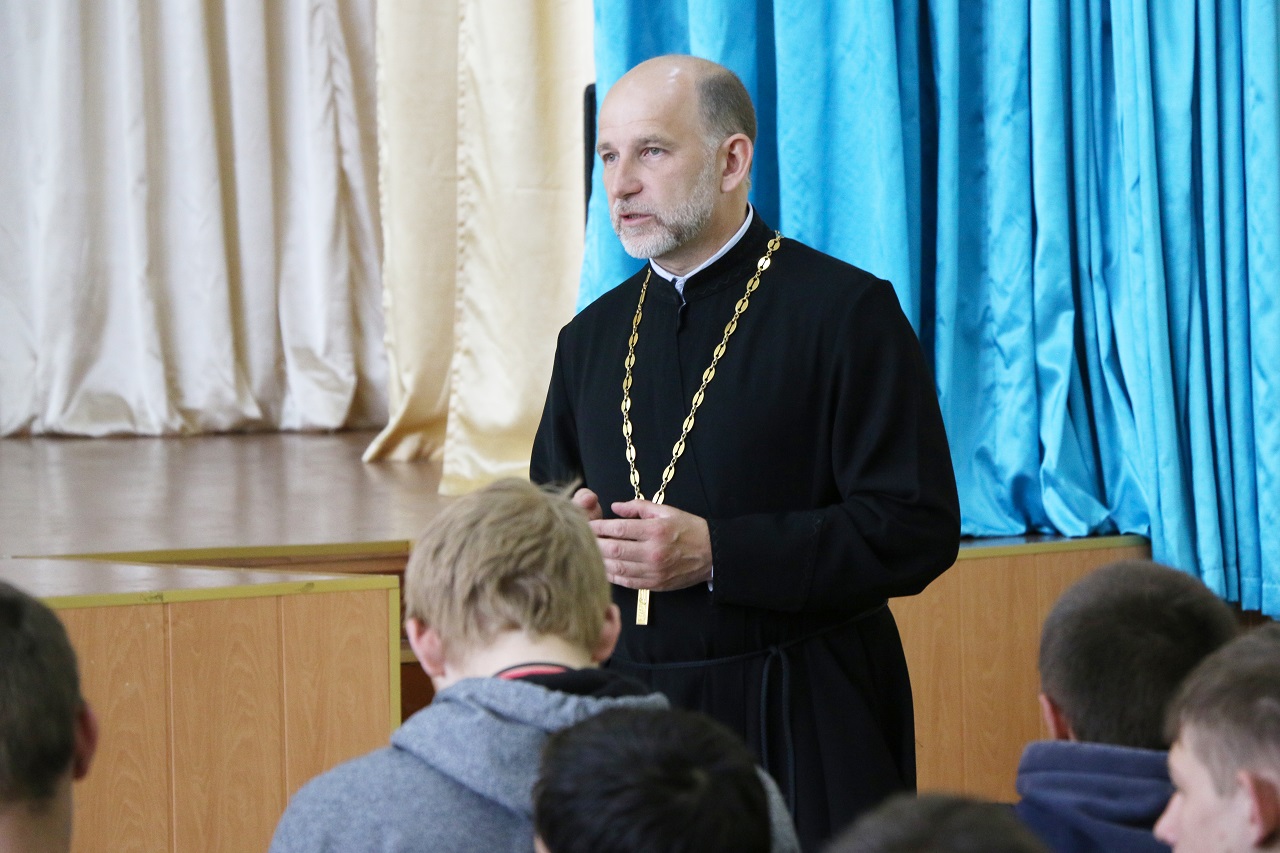 29 мая в актовом зале состоялась встреча работников и студентов колледжа с отцом Валентином, который в начале встречи поблагодарил всех работников и студентов колледжа за активное участие в проведении Феодоритовского крестного хода. Своей главной задачей благочинный Кандалакшского округа считает духовное просвещение граждан. Настоятель Храма Иоанна Предтечи поделился планами по созданию духовно-просветительского центра имени Феодорита Кольского, на базе которого будут работать астрономический и экологический кружки, музыкальная студия, слесарная мастерская, поморская школа, и своего рода домашнее подворье. Вместе с отцом Валентином на встрече присутствовал председатель городской общественной организации «Кандалакшский ЯХТ-КЛУБ» Скопинов А.В., который рассказал о деятельности клуба и пригласил студентов лично принять участие в работе по строительству лодок. А в будущем на этих лодках можно будет выходить в плавание, принимать участие в регате.