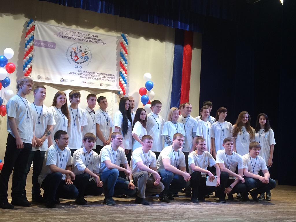 С 7 по 9 апреля 2016 г. студент группы №415 Никитин Кирилл принимает участие в заключительном этапе Всероссийской Олимпиады по профильному направлению 22.00.00 Технология материалов в г. Железногорске Курской области на базе ОБОУ СПО «Железногорский горно-металлургический колледж». Желаем Никитину Кириллу только победы!