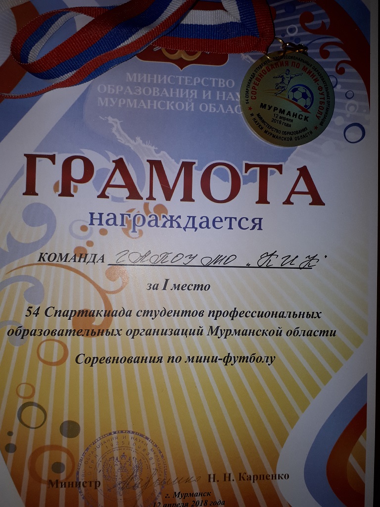 Все игроки сборной награждены грамотами Министерства образования и науки Мурманской области.